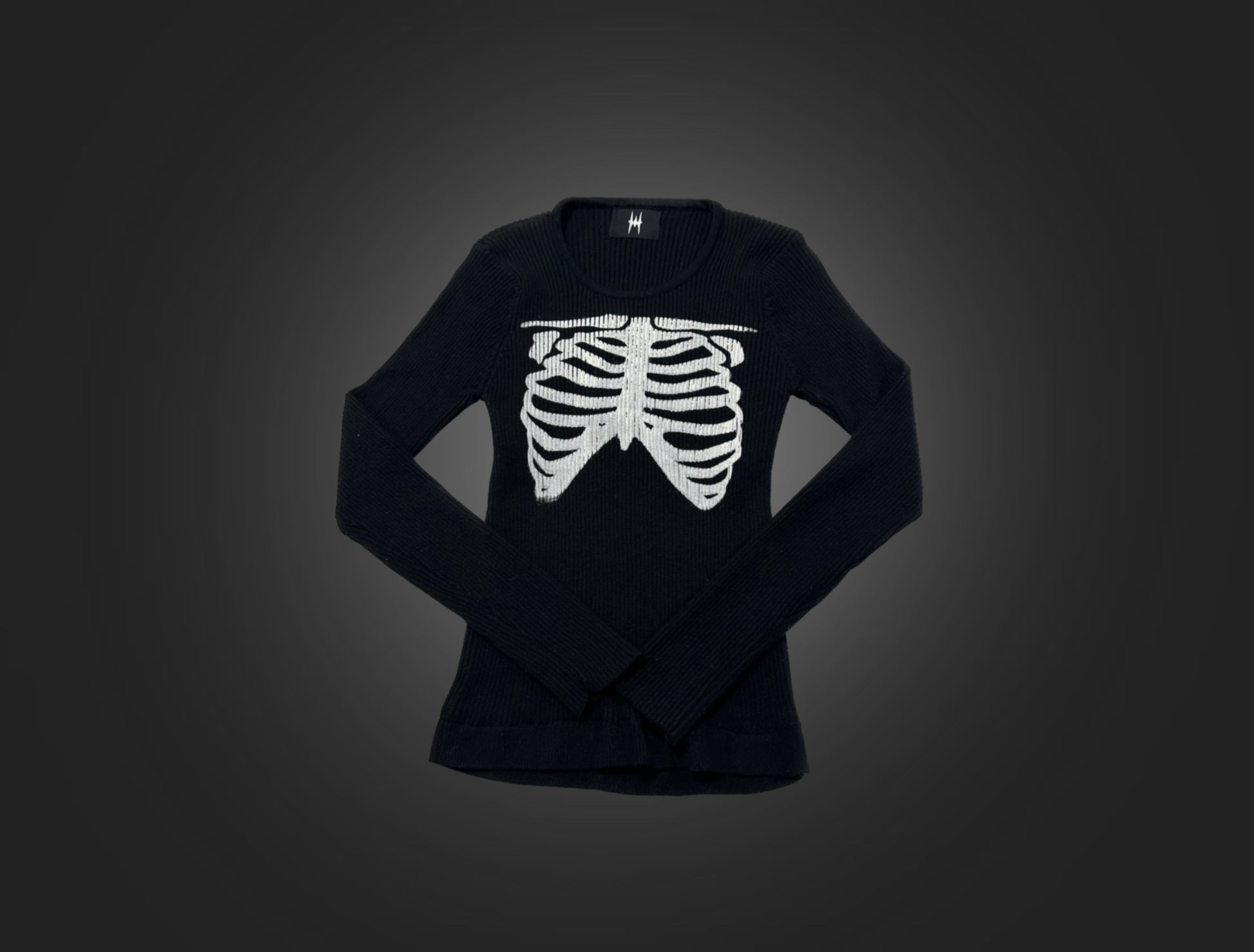 Ribcage design printed on a knitted sweater